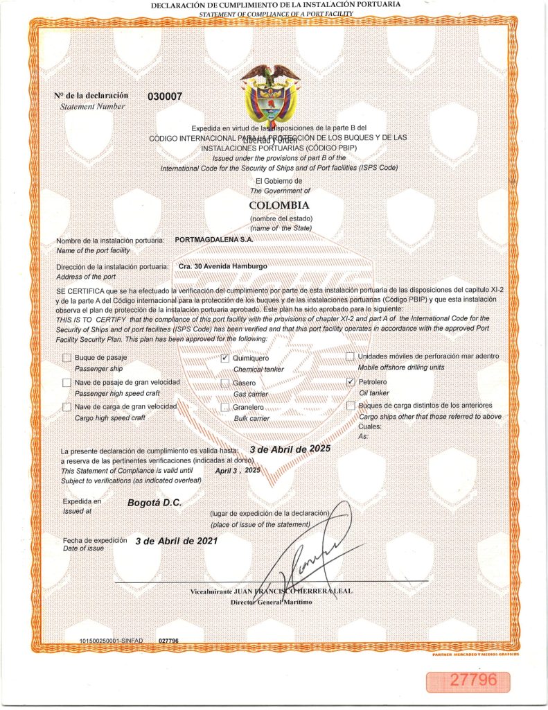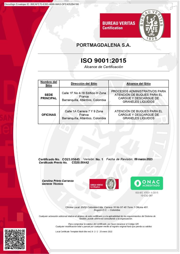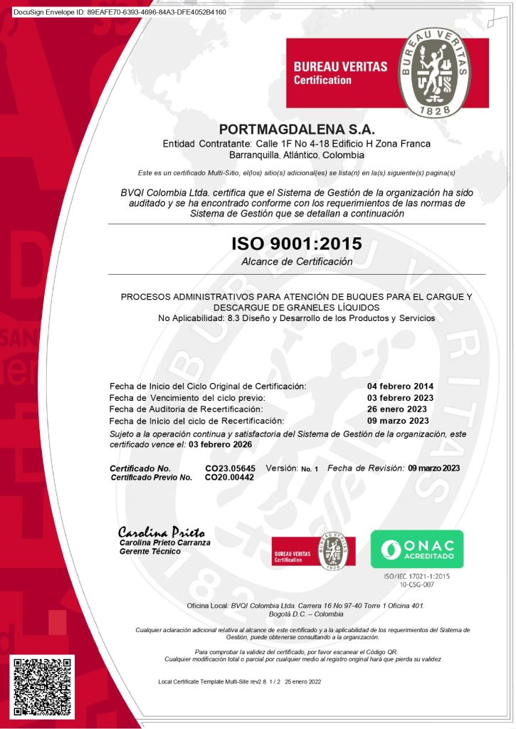 Certificado No. 1520236 de Septiembre 15 de 2020, COL-BV-MM-342-08-2020